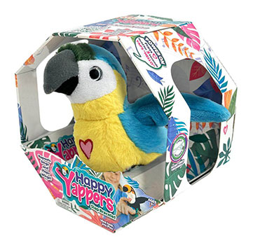 The vibrant Happy Yappers Slap Bracelet range is a playful and entertaining collection of six colourful birds, including a Toucan, Flamingo, Parrots, a Cockatoo, and an Oriole. Housed in fun cage-style packaging, these colourful birds perch on the wrist, chirp with gentle vibrations, and sing at the tap of a finger. Perfect for interactive play.