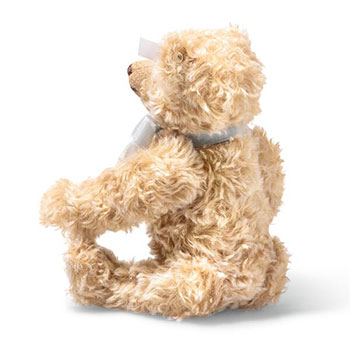 I declare before you all that my whole life whether it be long or short shall be devoted to your service. Queen Elizabeth II. The Queen was born on 21 April 1926, the first child of The Duke and Duchess of York, who later became King George VI and Queen Elizabeth. When Her Majesty acceded to the throne aged just 25, her life changed overnight from that of a young naval wife and mother to a busy Head of State. She was to become known for her sense of duty and her devotion to a life of service and was an important figurehead for the UK and the Commonwealth during times of both crisis and celebration with her steadfast strength and unparalleled commitment to duty. Her Majesty the Queen became the longest reigning Monarch in British History. A record she broke once held for more than a century by her great-great grandmother, Queen Victoria. Our much loved queen died peacefully at Balmoral 8 September 2022. She was loved and respected and is greatly missed across the globe. Steiff are honoured to pay tribute to Her Majesty The Queen with this glorious Teddy bear made of the finest beige mohair. Her paw pads are delicately embroidered in gold thread with the royal cypher EIIR and the silhouette of the queen. From her double bow hangs a beautiful cameo pendant. This bear embraces Queen Elizabeth II and her 100th birthday.